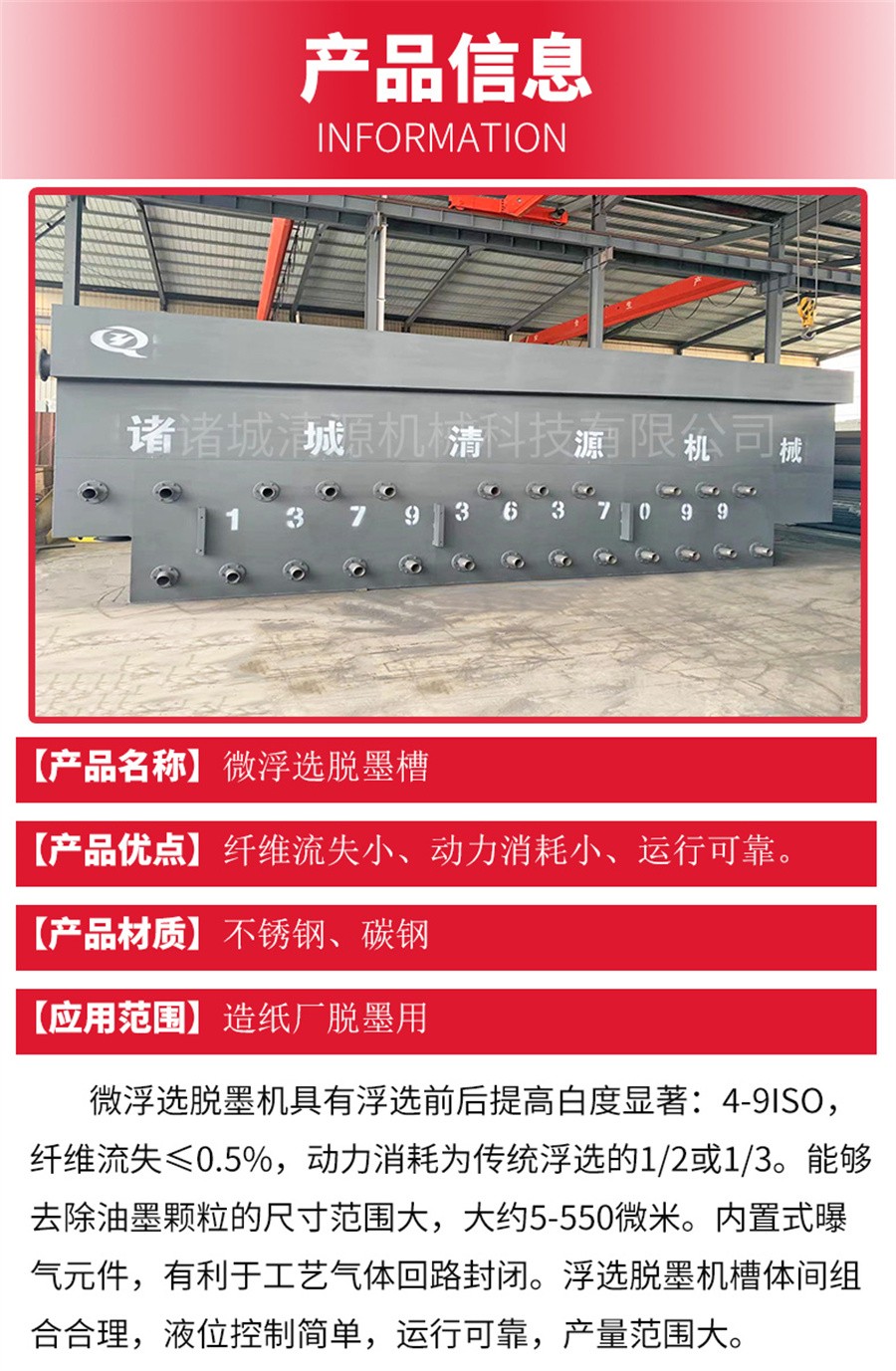 此外,我公司還生產(chǎn)浮選脫墨機(jī)、地埋式污水處理設(shè)備、氣浮機(jī)、固液分離設(shè)備等其他設(shè)備。