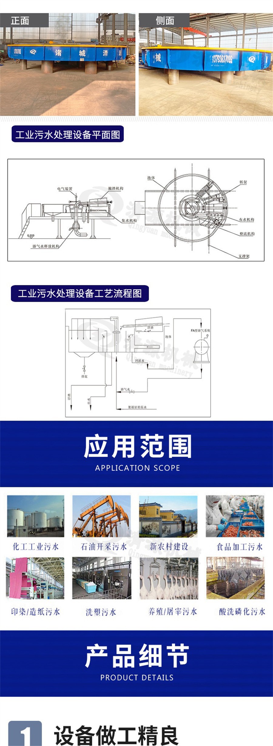 四、應(yīng)用范圍:該設(shè)備以先進的設(shè)計,優(yōu)良的性能,廣泛應(yīng)用于石油、化工、鋼鐵、制革、電力、紡織、食品、釀造、市政等行業(yè)的污水處理系統(tǒng),是傳統(tǒng)氣浮設(shè)備的替代產(chǎn)品。